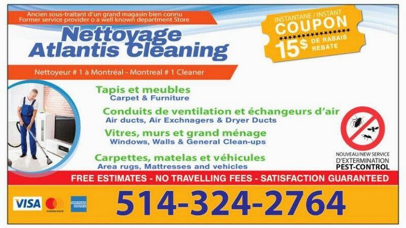 Reach out to Atlantis Cleaning Home Services in Saint-Léonard today for professional cleaning tailored to your needs. Our team is prepared to respond promptly to ensure a clean and healthy environment. Feel free to request a personalized quote or schedule an appointment with our specialists. Trust our expertise to transform your living or working spaces into clean, comfortable environments.